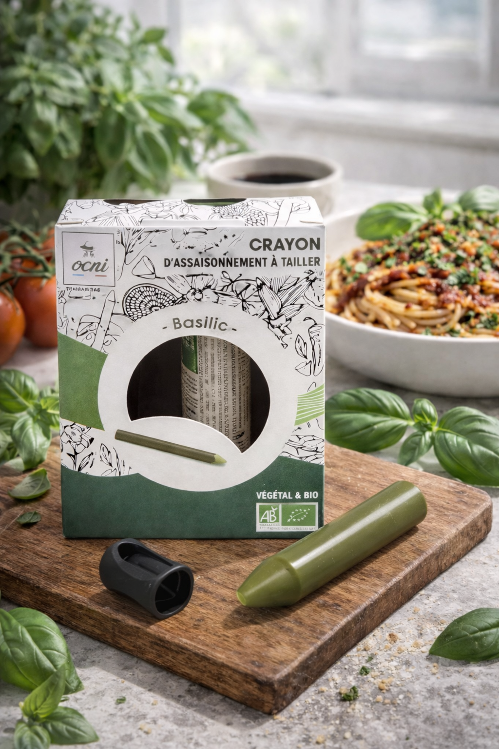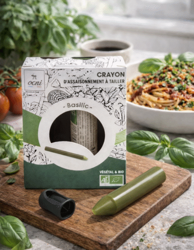 Le Crayon d’assaisonnement Basilic réinvente l’herbe aromatique en cuisine avec un geste simple et précis : on taille, on parsème, on sublime. Quelques copeaux suffisent pour apporter la fraîcheur végétale du basilic, comme une touche finale “chef”, sans hacher, sans mixer, sans perdre les arômes. Un format original, propre et premium, parfait pour les plats du quotidien comme pour les assiettes soignées.