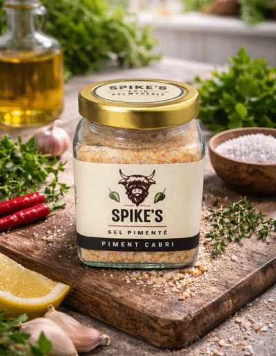 Le Spike’s Sel Pimenté – Piment Cabri Vert est l’essentiel pour relever vos plats avec précision. Fabriqué artisanalement (péi), il associe la simplicité du sel à la puissance aromatique du piment cabri vert pour apporter du caractère, sans masquer les saveurs. Une pincée suffit pour transformer un plat du quotidien en assiette pleine de peps.