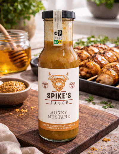 Élégante et parfaitement maîtrisée, la Honey Mustard Spike revisite l’accord moutarde–miel dans une version fine, ronde et gourmande. La moutarde s’exprime avec caractère, adoucie par un miel délicat, pour une signature sucrée-salée douce mais pleinement expressive. Sa texture lisse, fluide et nappante enrobe sans alourdir et sublime aussi bien une volaille, un saumon, qu’une salade tiède. Une sauce pensée pour les accords précis et les assiettes simples… parfaitement exécutées.